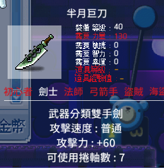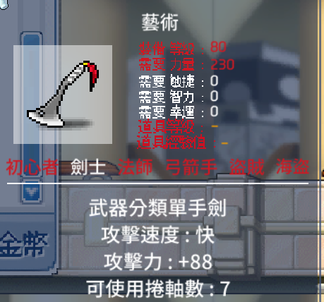 道具 【劍士武器】 雙手劍 單手劍 弗勞特之劍 長八蛇矛 金蛇劍 藝術 銀龍槍 霸王劍 斯巴達單劍