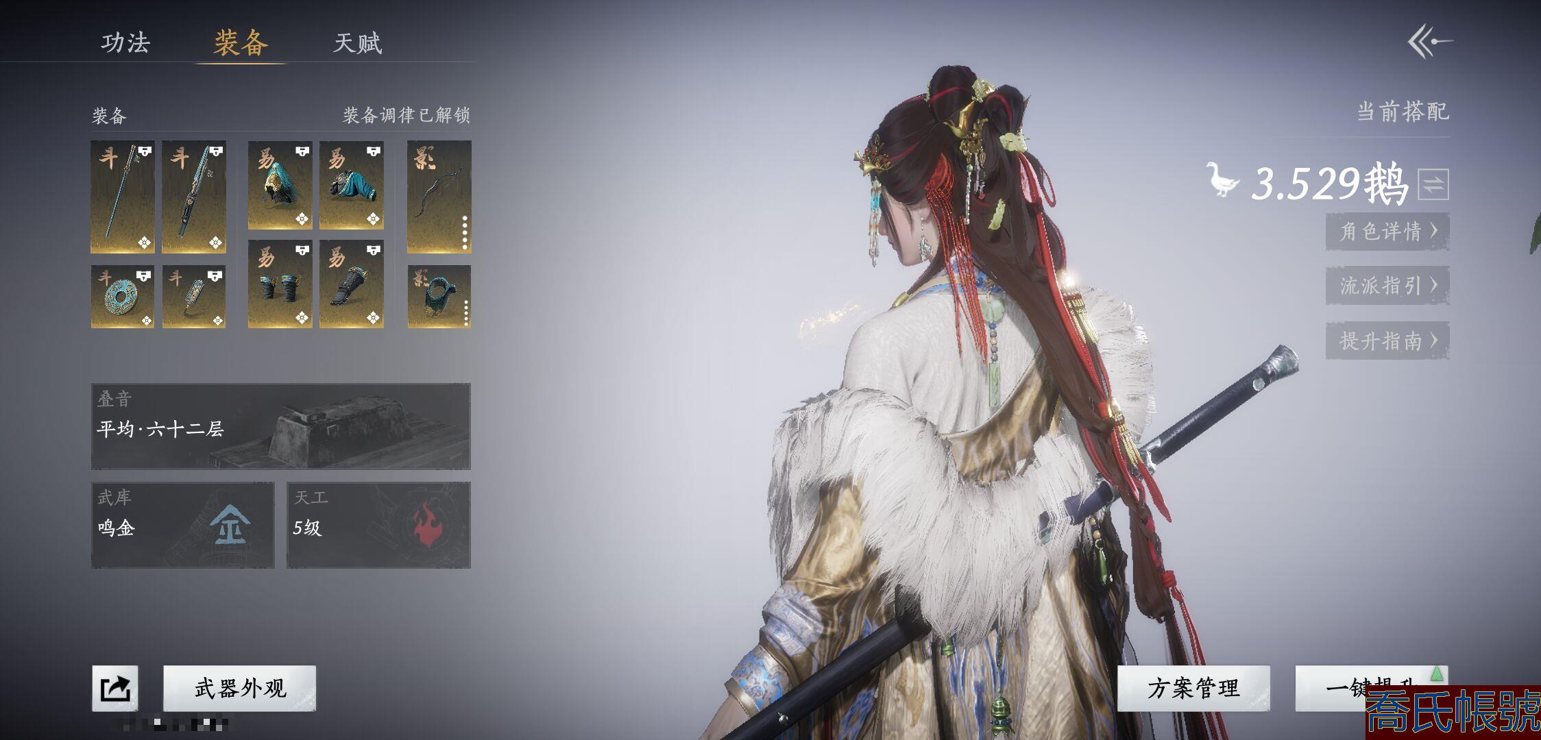【OBYIDJV263042】等級100,風華值18342,武林造詣3.529鵝,已用八音竅(不含染色)1,未用八音竅2,套裝數量16,坐騎數量3,戰令等級41,套裝:葬花吟/晏平生/紅塵書/不盡狂瀾/清河強者/金池鯉/逐紅花/一心三藏/舞花間/上青雲/丹雀/遙夜行/落花聞詔/連衍墨山/縱橫/風入畫;武學奇術:萬劍歸宗;武學心法:無名槍法100級/無名劍法100級/易水歌六重/無名心法六重/千山法六重/威猛歌六重/燎原星火六重;武器外觀:霜楓愁/霜楓盡/霜楓寒*2/霜楓橫/月中詩/木棍;載具:白義/盜驪/飛毛腿;披掛:火燎三關;髮型:錦瑟華年/重明;必得絕世次數:嫋嫋之音149次內,嫋嫋之音·綁141次內,陰陽易形丹:1;【道具代幣以實際驗號為準】【賬號】兩個八音竅,九百多本心法箱子,90多個心力丹,囤囤鼠大甩賣了,誠心要帶價來