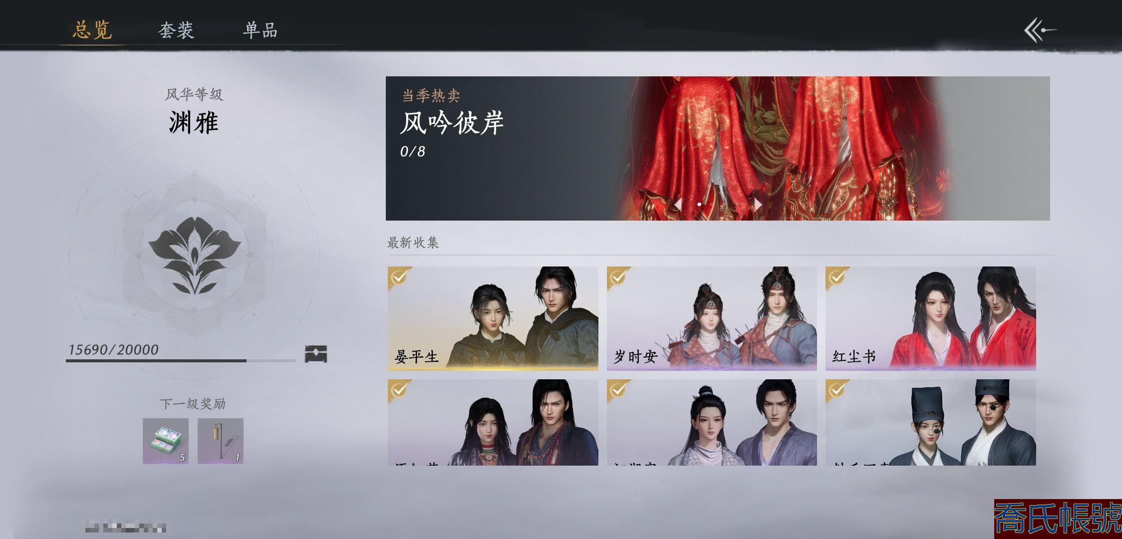 【OBYHWCI277442】等級100,風華值15690,武林造詣3.530鵝,已用八音竅(不含染色)3,未用音玉3,清河探索5級,開封探索5級,河西探索5級,套裝數量9,坐騎數量1,戰令等級8,套裝:晏平生/紅塵書/清河強者/江湖客/逐紅花/丹雀/遙夜行/雁還鄉/歲時安;武學奇術:一雷驚蟄/魚龍焰舞;武學心法:泥犁三垢100級/粟子游塵100級;武器外觀:藏音·苦晝難長/吹冷秋霜/霜楓舞/魚有絨焉/霜楓橫;載具:盜驪;披掛:火燎三關;必得絕世次數:嫋嫋之音149次內,嫋嫋之音·綁107次內;【道具代幣以實際驗號為準】【賬號】四個八音竅,換的雙刀武器,雙刀特效,繩鏢特效, 大佛特效,還有三個音玉,可以再換一個奇術特效,幸運號,懂得來,11月19可以換綁