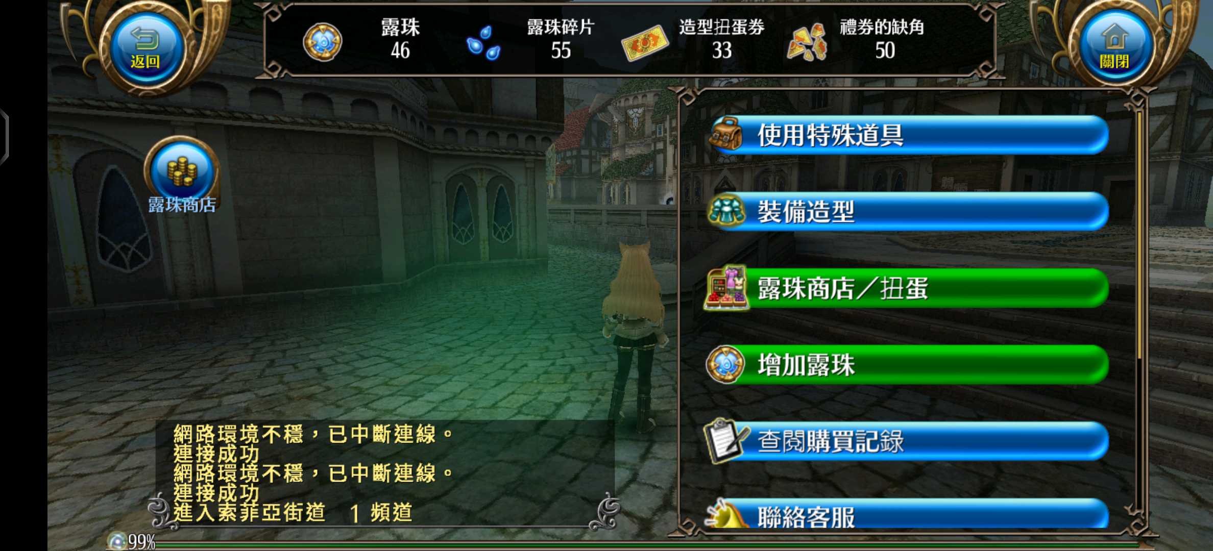 使用 露珠、禮券 後所獲得的時裝、道具,在各平台都可以看到呦~