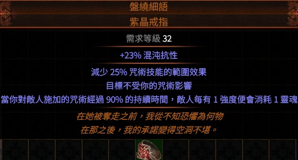 道具 PoE6L持續時間👌傳奇→盤繞細語.紫晶戒指 (咒術靈魂技能範圍)
