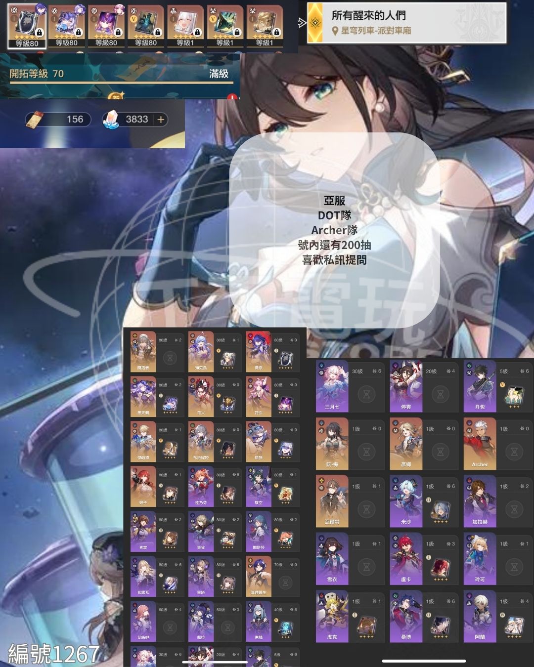 Archer、二命黑天鵝➕專武、一命知更鳥、黃泉➕專武、符玄➕專武、花火、阮梅、銀狼、真理、鴨鴨、一命姬子、一命傑帕德、一命瓦爾特!