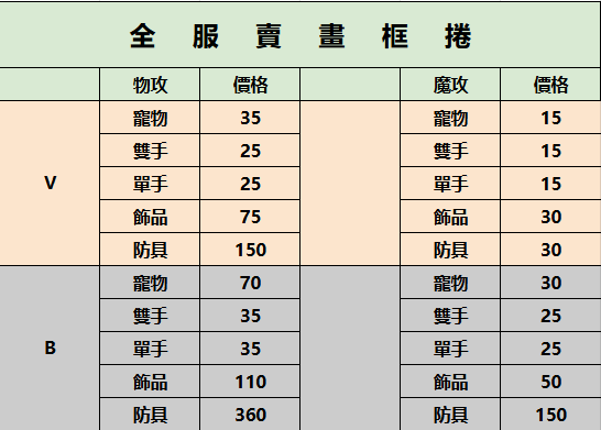 *各伺服器皆有卷軸 價格部分時候會小浮動