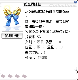 蔚藍蝴蝶結(經驗、掉寶+5%)