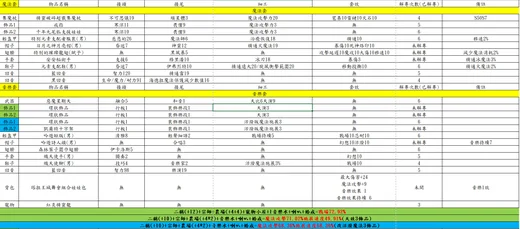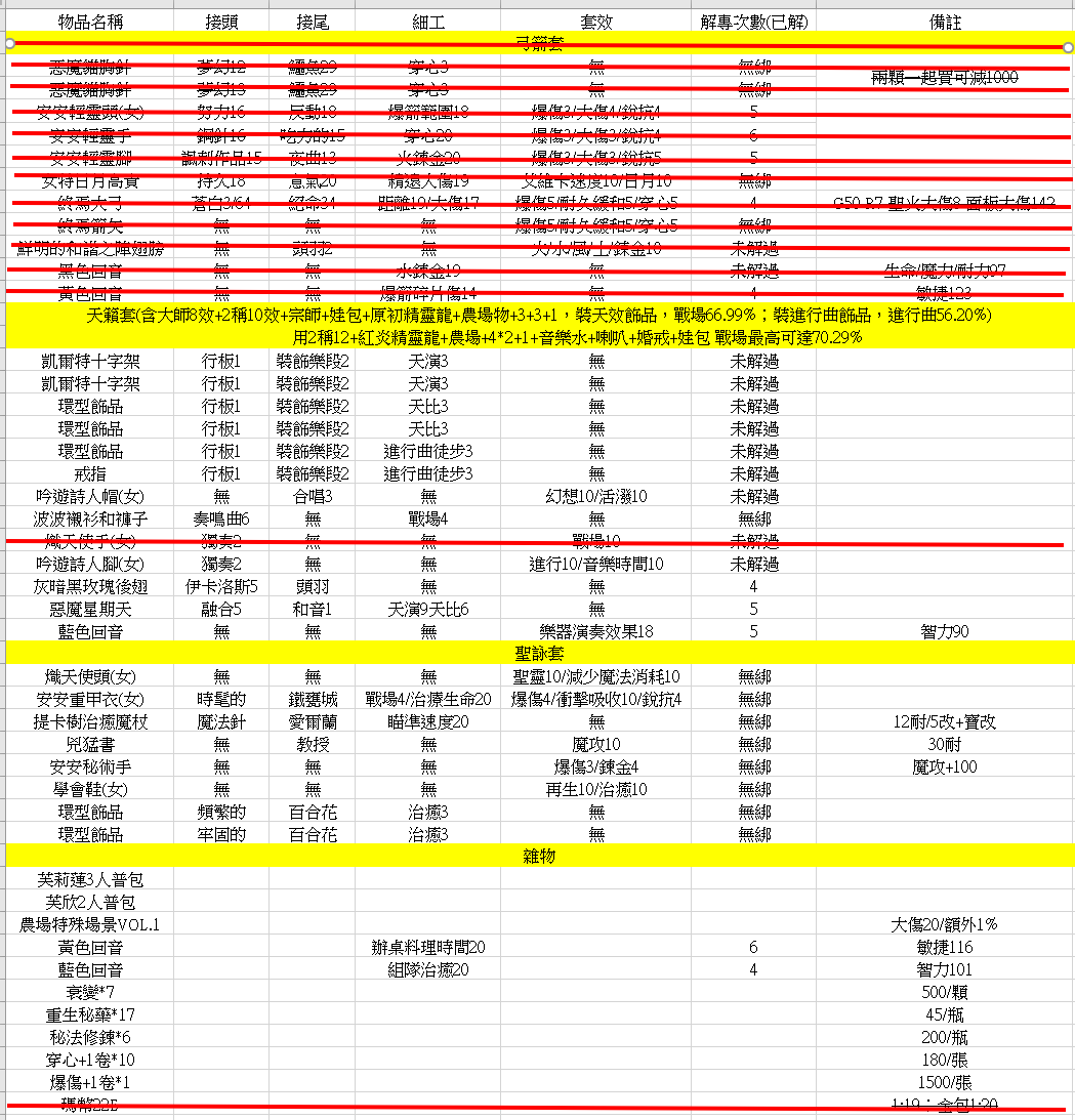物品名稱 | 接頭 | 接尾 | 細工 | 套效 | 解專次數(已解) | 備註 |