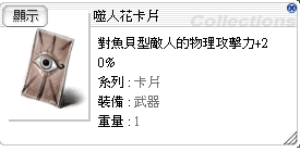 道具 噬人花卡,魚貝類增加物理攻擊20%