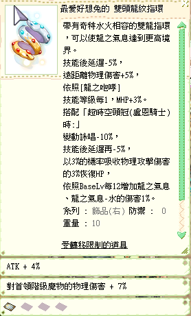道具 雙頭龍紋指環 好想兔卡片 首領階級物理7%