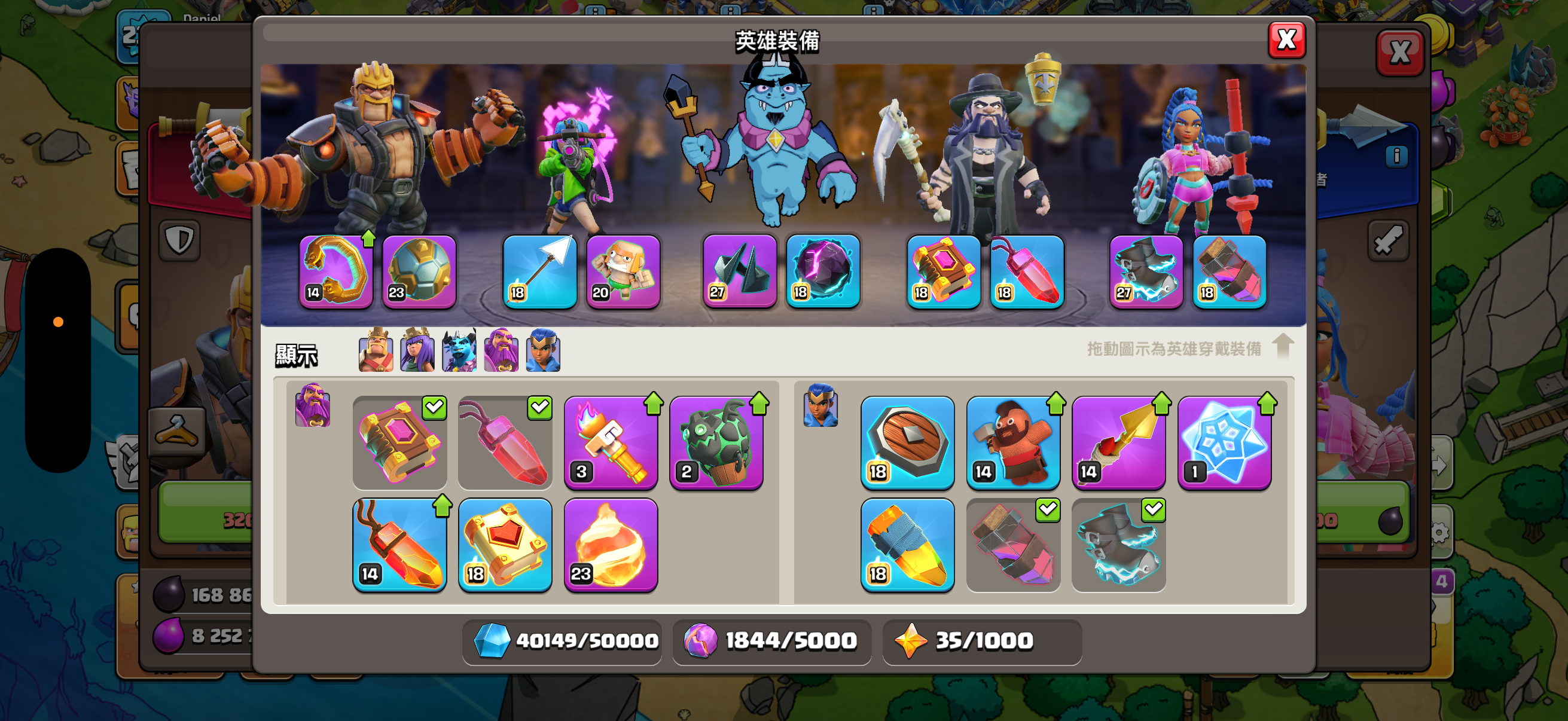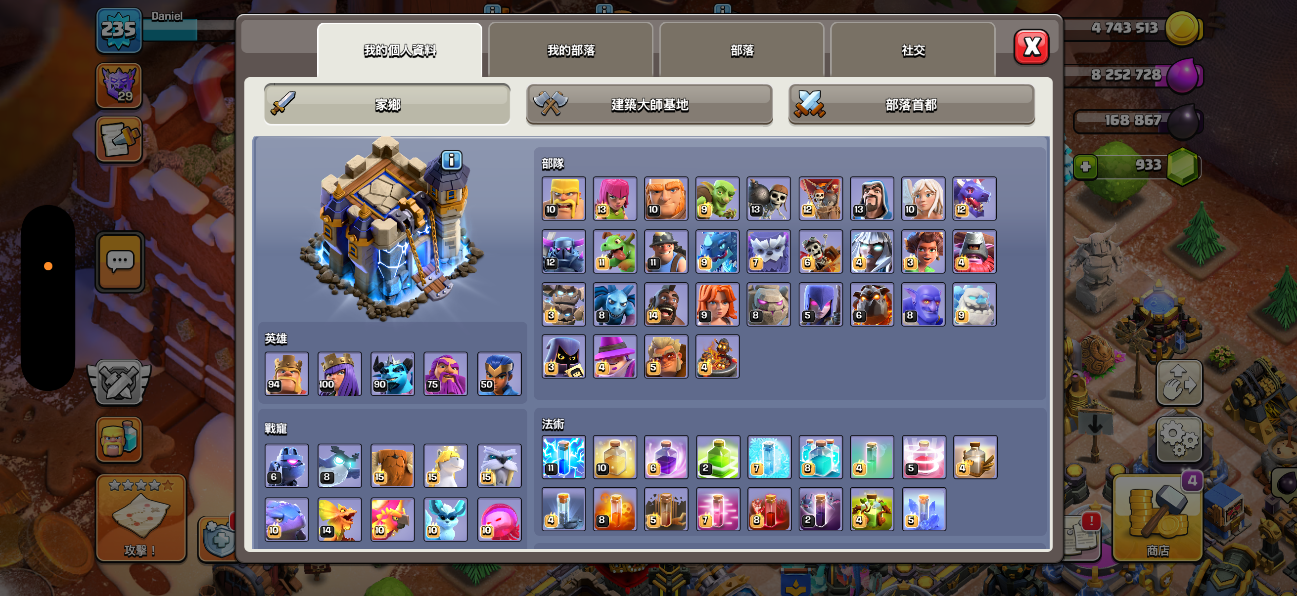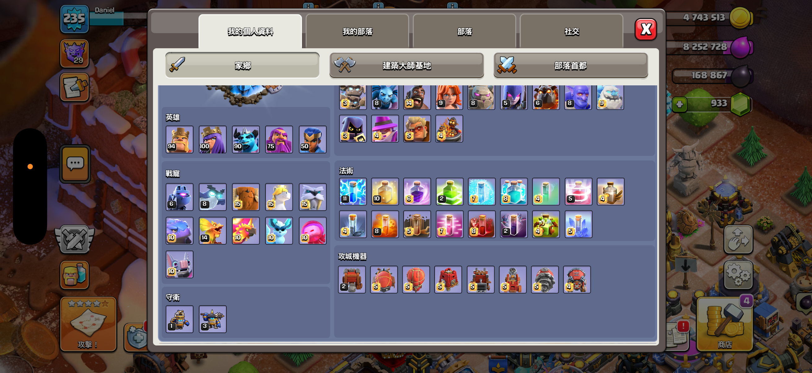 城牆滿、科技九成以上滿、兵種差一級、裝備全部都有
