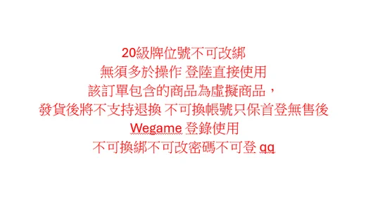 該訂單包含的商品為虛擬商品,發貨後將不支持退換 不可換綁賬號-質保首登無售後 Wegame 登錄使用 qq
