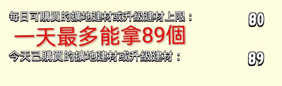 擴地材料平均89個=50元 (買五送一)