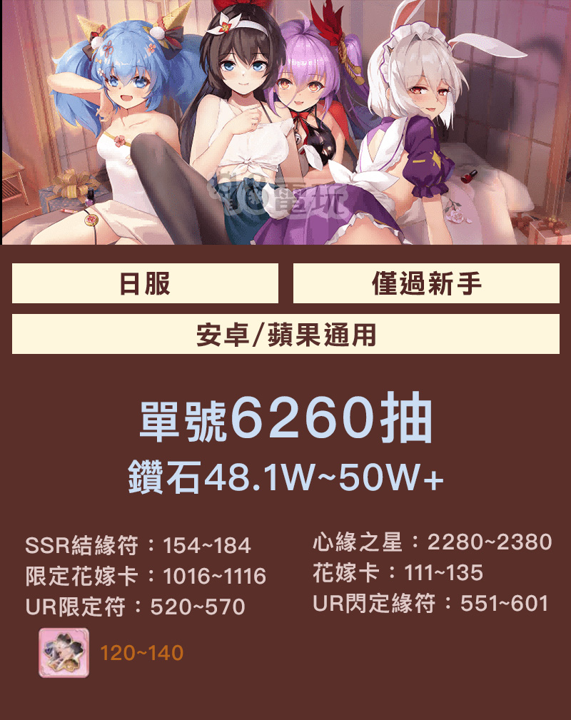 帳號 【初始號】 蘋果🌟單號6260抽🌟SSR結緣符🌟UR抽獎券🌟花嫁卡
