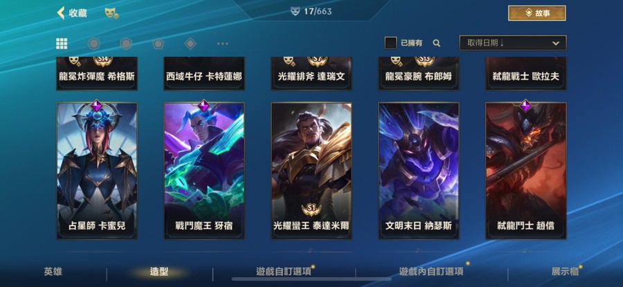 如圖,總共138個(5金),紫色橘色一堆,聖典造型、通行證造型