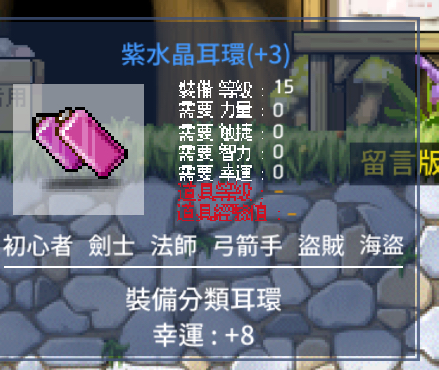 道具 【15等紫水晶耳環8幸耳環】 全職實用裝+8幸運8屬