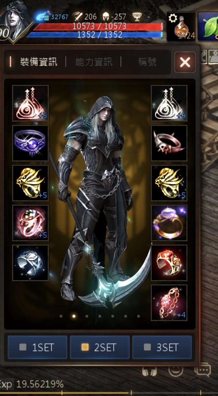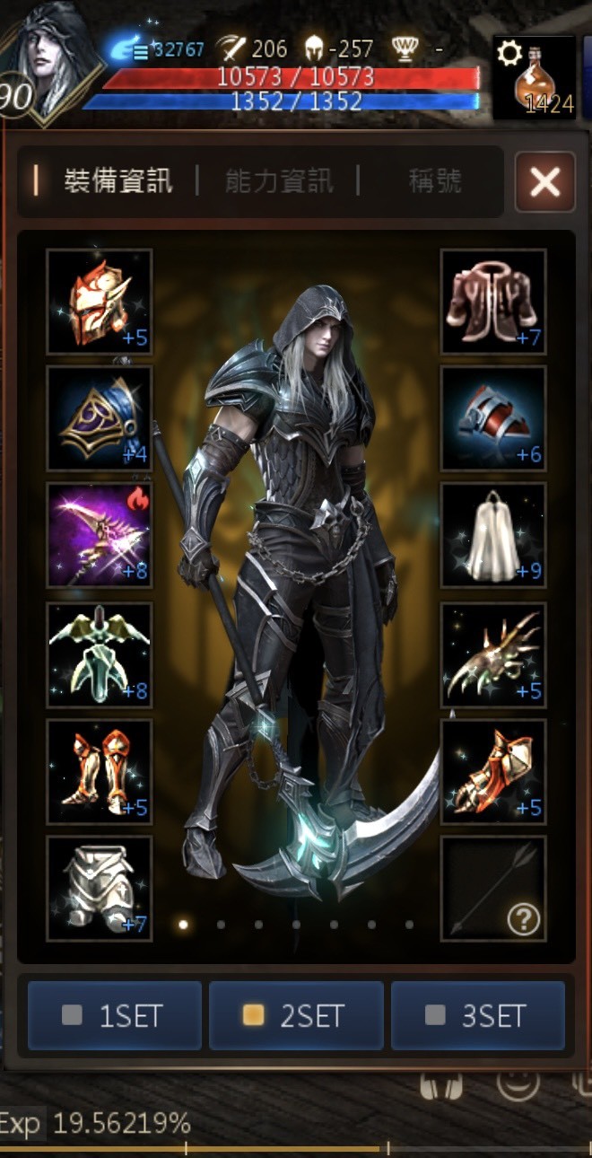 裝備:+8受祝福三皆惡魔王鐮刀(刻印)+7騎士團鐮刀(刻印) +9吸血鐮刀 (刻印)