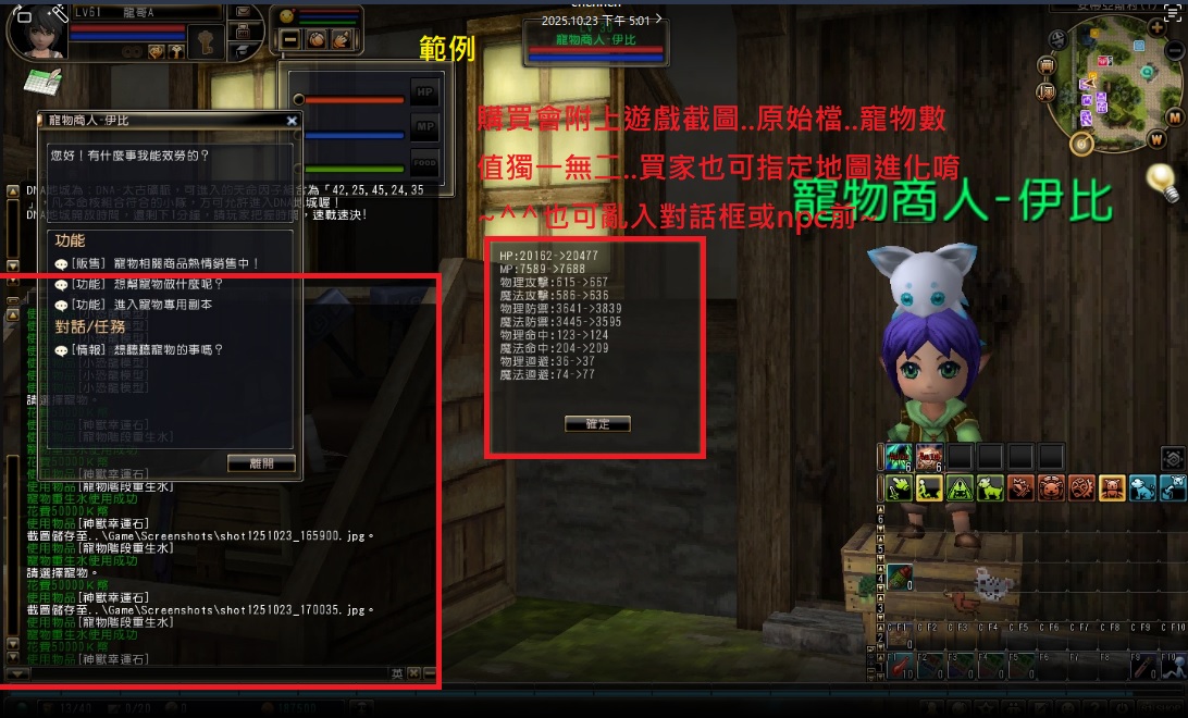 初高階會截圖使用道具介面+進化後數值介面給買家對照