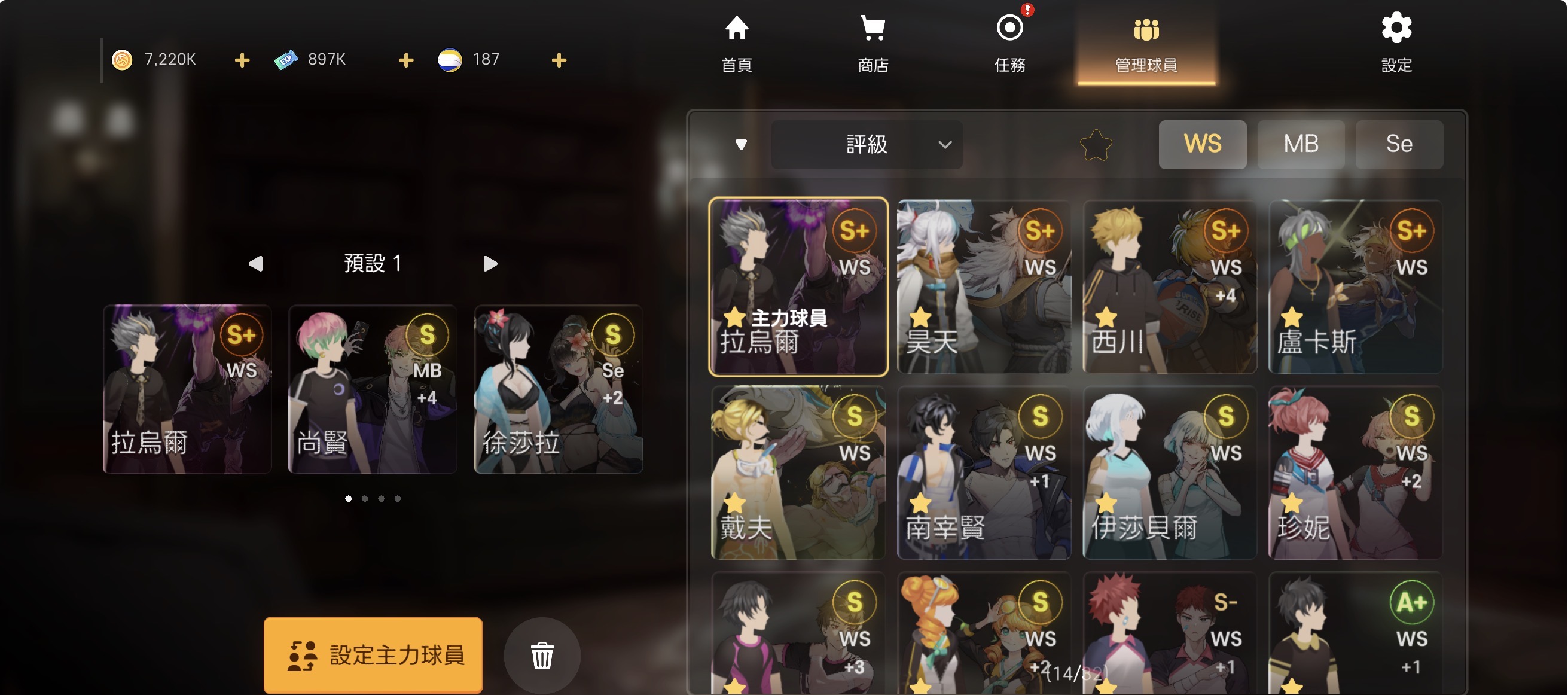 帳號 【9999等】 4S➕⚡️高中西川➕4⚡️南宰賢訓練服🔥尚賢➕4🎸克萊爾➕1🔥徐莎拉➕2❤