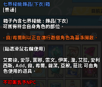 道具 七界權能 下衣飾品箱 共通 諾亞 莉緹亞 無法開啟