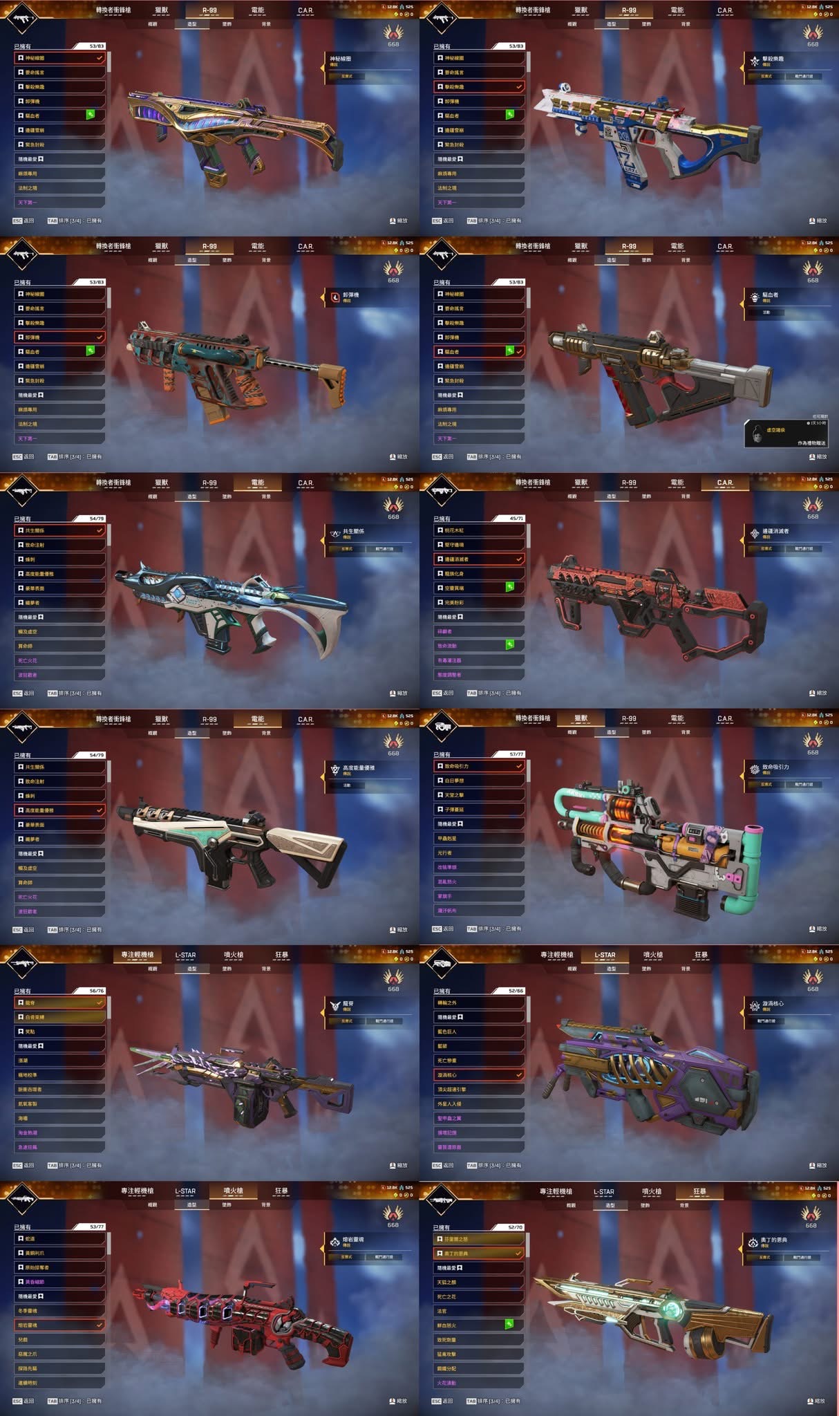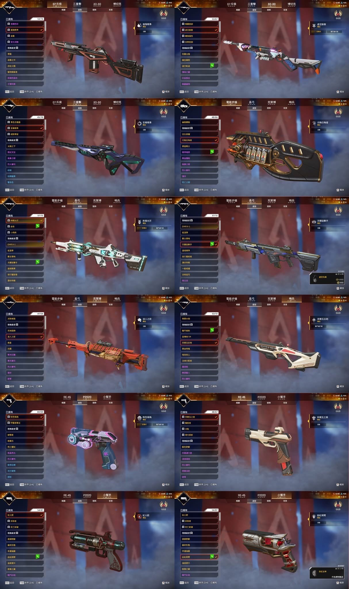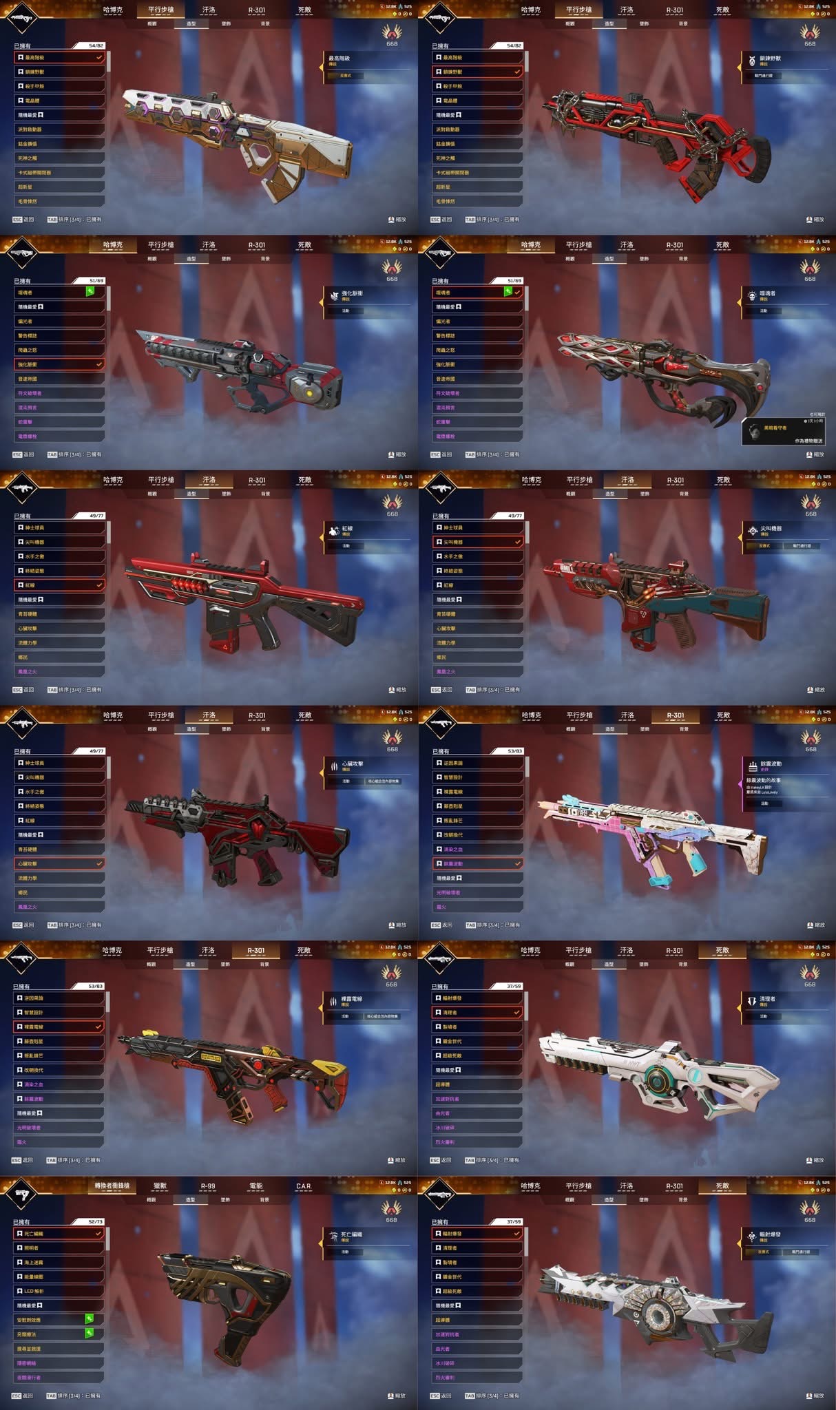 槍造型:最高階級 鎖鏈野獸 噬魂者 紅線 尖叫機器 心臟攻擊 餘震波動 清理者 輻射爆發 異色尖端/零點 卸彈機 共生關係 致命吸引力 虛空脈衝 刺眼光芒 紅火箭 老藍 (多頂級造型)