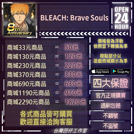 代儲【商城650日幣商品=170元】 🔥死神BLEACH日服🏆24H客服🏆現貨秒出🔥台灣囝仔🔥退刷包賠