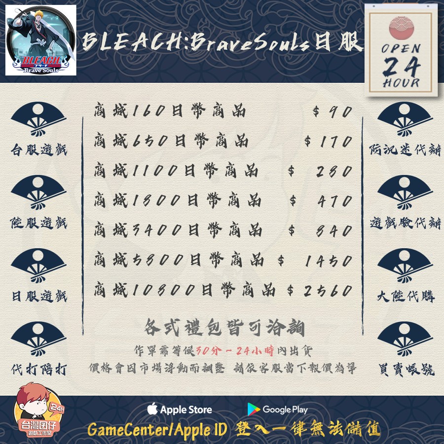 代儲【商城650日幣商品=170元】 🔥死神BLEACH日服🏆24H客服🏆現貨秒出🔥台灣囝仔🔥退刷包賠