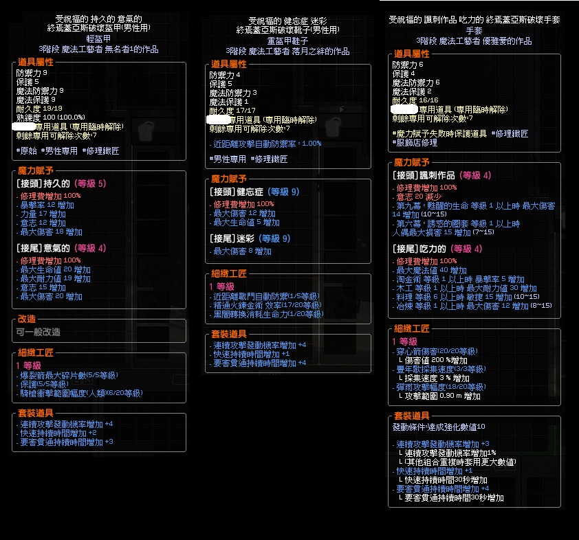 男終焉穿心一套 雙開套裝 爆裂箭碎片5+穿心傷害20+精通火鍊17