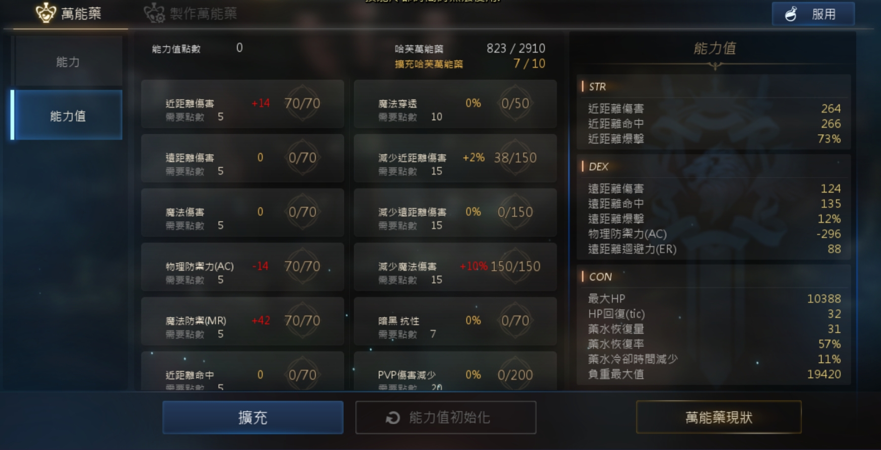 攻擊裝 進傷264 防禦294 抗魔458 減免66+38+50