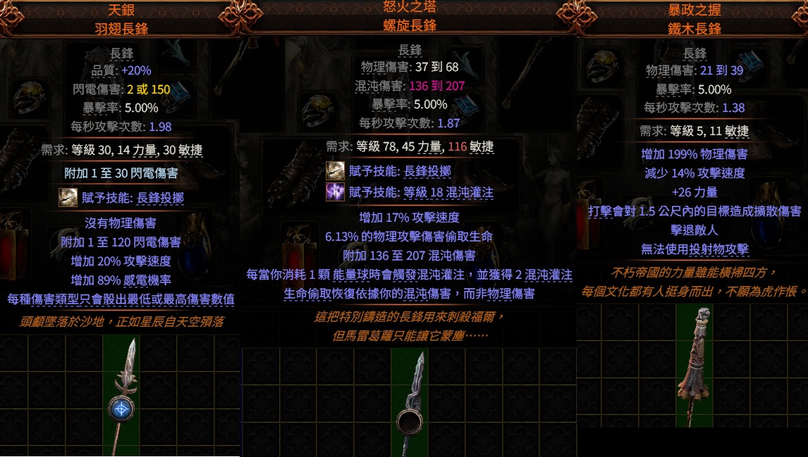 道具 【長鋒、單手武器】 混沌灌注👌天銀.羽翅長鋒、怒火之塔.螺旋長鋒、暴政之握.鐵木 ( 長鋒投擲