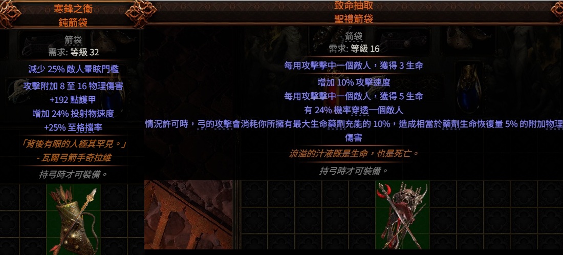 道具 PoE2弓👌傳奇→致命抽取.聖禮(藥劑附加5%物理傷害)寒鋒之衛.鈍箭袋(格擋