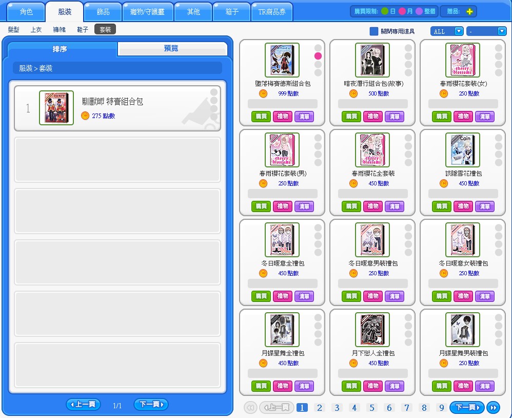 道具 贈送點數商品 9折(有禮物選項)商店農場 1點數=0.9元 需實收