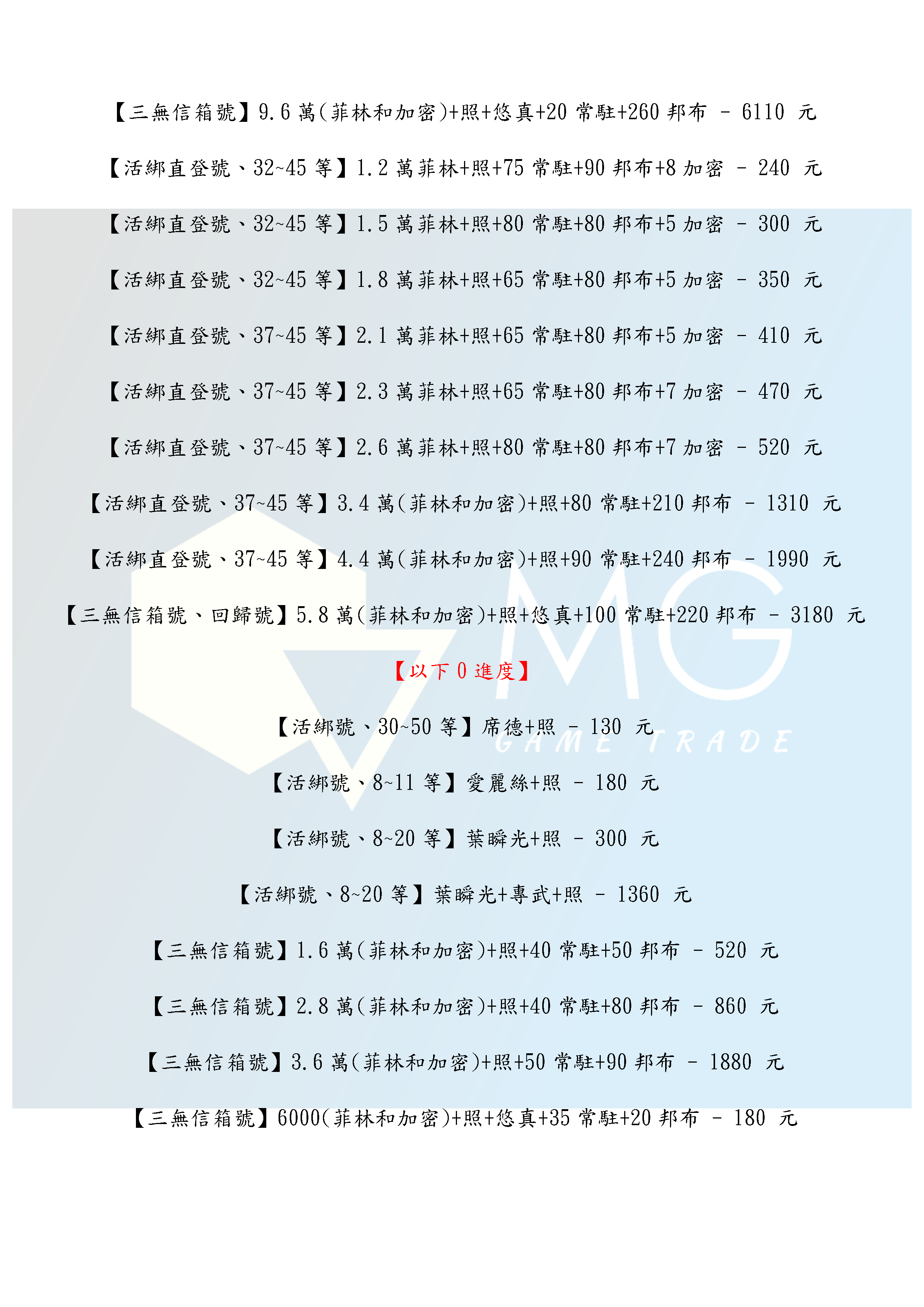 帳號 【初始號】 【MG數碼】亞服 美服 歐服 陸服 多石號 初始號 自抽號 自選號 自選組合