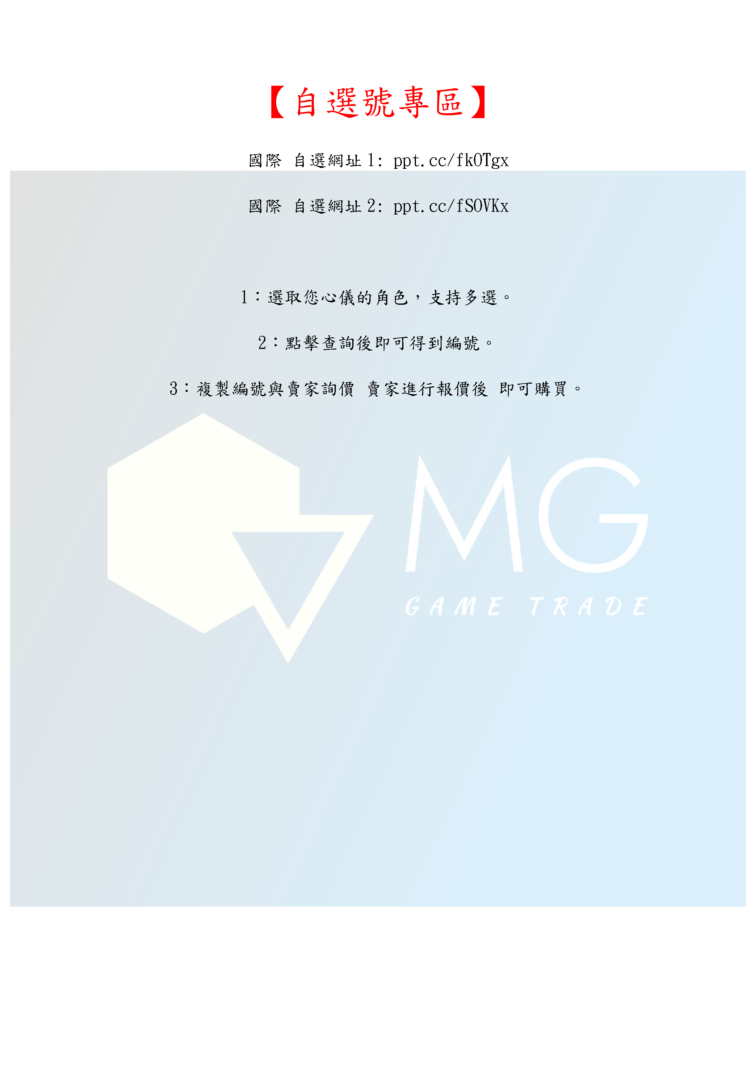 帳號 【初始號】 【MG數碼】亞服 美服 歐服 陸服 多石號 初始號 自抽號 自選號 自選組合