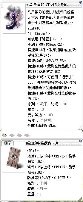 道具 +12虛空陰暗長靴[蜷曲的中級蠕蟲卡片]/潛擊/BOSS增傷15%/打王必備