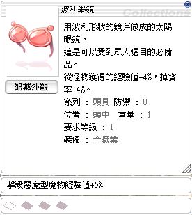 道具 波利墨鏡[擊殺惡魔經驗型魔物經驗值+5%][1]/經驗值+4%/掉寶率+4%