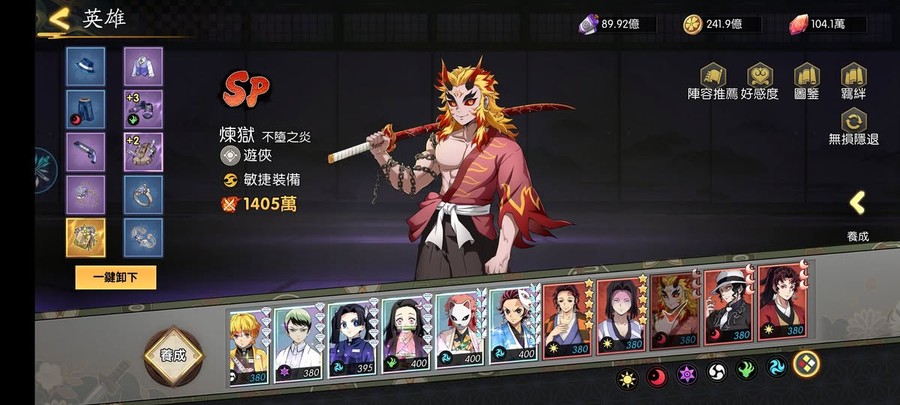 上場全sp 煉獄 萬馬奔騰蜜籬 繼國緣一 繼國岩勝 炭十郎 產座敷耀哉 鍛刀村村長 柏志 鬼王炭治郎 無慘 日行鬼彌豆子 珠世 旖窩座 墮姬 蝴蝶忍 伊黑小芭內 蜘蛛鬼 炎柱 音柱 半天狗 竈門炭治郎 竈門彌豆子 黑死牟 我妻善逸 戀柱 香奈乎 童磨 竈門花子 姬夫太郎 不死川實彌 琵琶鬼 時透無一郎 甘露寺蜜璃 悲鳴嶼行冥 ssr太多了不一一打 sp任選有5次 vip9