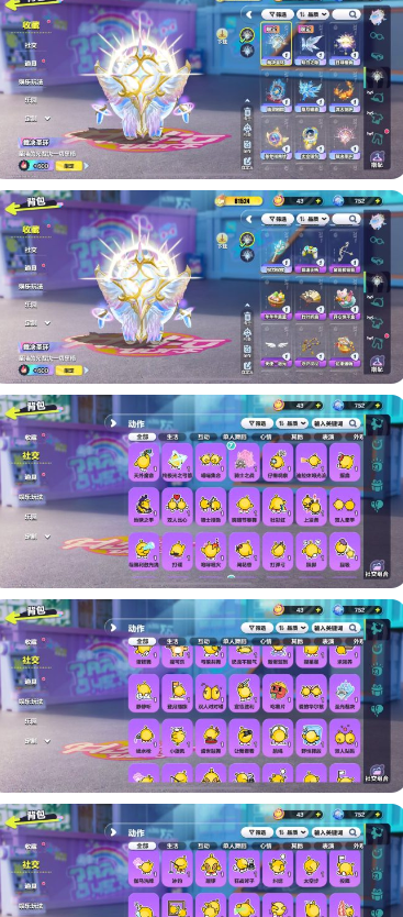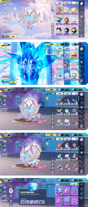 背飾:月白之隱 ' 碎晶幻翼 ' 閃閃星蝶翅膀 ' 逐浪日誌 ' 淺海藍靈 ' 幽靈劇院 ' 美夢指南針 ' 木製怪獸玩具 ' 電極蝴蝶結 '