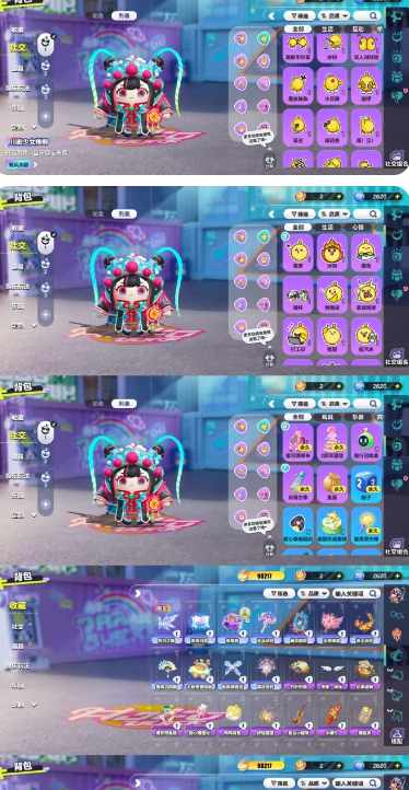 紫色套裝:愛神丘比特 ' 蛤蟆小兵 ' 電視機多樂 ' 極光女神典伊 ' 虎皮卷大灰狼 ' 甜甜圈諾奇 ' 超燃蛋小藍 ' 大娃 ' 渡鴉阿舍爾 ' 莓莓甜心兔 ' 熊二 ' 熊大 ' 音樂家蕾利 ' 小福袋添運 ' 雪怪瓦圖魯 ' 北極兔盧米 ' 骨精靈 ' 小太陽葵葵 ' 道具師芙芙 ' 小演員露希 ' 袋鼠嘟寶 ' 魔燈閃閃 ' 洗澡 DUCKO0' 吟遊詩人彌亞 ' 白羽仙女索菲 ' 巴爾坦星人 ' 澤塔 ' 賽羅 ' 迪迦 ' 螢火偷偷 ' 海藻偷偷 ' 雪王 ' 星雲咩咩 ' 玫瑰騎士 ' 蓋碗茶青青 ' 熊貓歲歲 ' 兔仙 ' 仙人掌丘丘 ' 機械師維迪 ' 茨木童子 ' 三角龍小薩 ' 蜜蜂 DongDong' 塗山淺淺 ' 灰太狼 ' 懶羊羊 ' 鈴蘭三月兔 ' 藍櫻愛麗絲 ' 仔仔熊 'DongDong' 旱獺 ' 嗷嗷 ' 鬆餅小紅帽 ' 圓圓子 ' 糖心公主 ' 淘氣丸子 '