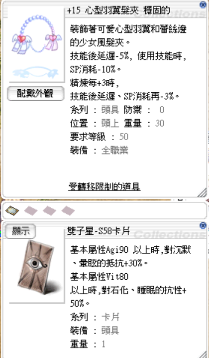 道具 [新手好物]+15心型羽翼髮夾(技能後延遲-20%、SP-25%)