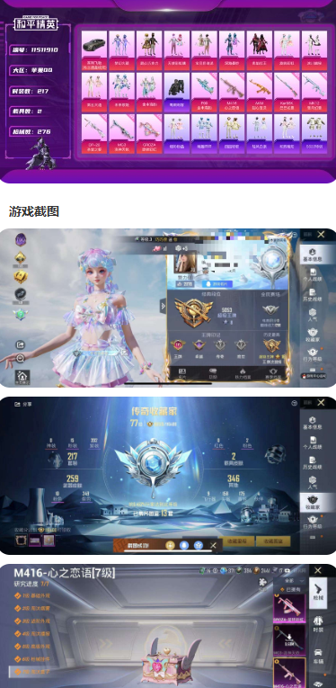 10 粉裝 7 特效槍 13 印記 可二次 可修改實名 戰神框 優質裝備:甜心巧克力 熱門裝扮:夢幻火箭 (新 101)(新火箭少女 101 粉色套裝), 天使彩虹糖,寶貝奶油派,童趣迷兔,炙焰紅王,冰霜白皇,焰龍焚天,吟月歸客,銀龍傲海,潮萌小黃鴨,浪漫波比 稀有槍皮:Kar98K - 巳巳如意,M416 五爪金龍,M416 心之戀語,SCAR-L 夢幻火箭,AUG 星之彼岸,M762 甜蜜誓約,UZI 綺夢青鸞 七級特效槍:七級 M416 - 心之戀語 五級特效槍:五級 Kar98K - 巳巳如意,五級 UZI - 綺夢青鸞 四級特效槍:四級 M762 - 甜蜜誓約,四級 SCAR-L - 夢幻火箭,四級 M416 - 五爪金龍,四級 AUG - 星之彼岸 紫色裝扮:萌趣咩咩,SS20 特訓,SS21 特訓,嬌憨猪猪,暖心熊熊,靈公主,SS30 特訓套裝,SS31 特訓套裝,SS33 特訓套裝,旭日情侶,頂瓜瓜,光影夢想家,星夢暢遊,星河入夢,夢起落英,青春冒險家,潮流遊樂家,SS15 特訓,暗夜傀儡,萌趣顏團子,時空追擊者,SS14 特訓,治癒之星,迅捷之星,科技之星,暴風機械師,飛馳魅影,SS18 特訓,雪兔飛飛,音速流光,SS19 特訓,冰川特警,SS16 特訓,瑞龍福將,團圓交子,SS17 特訓,虎虎生威吉莉,空島之星,空投萌嘰,繽紛果語,耀眼新星,長空猛禽,冰河戰士,龍魂突擊隊,蝶變,香桃花海,霓虹街區,龍的傳人,魅力單車,福星高照,格鬥先鋒,千禧之戀,吉莉禮服,夏日音浪,甜蜜告白,白色伏地魔,清新檸檬,湖藍色名流,牛氣滿滿,灰色格鬥者,炫藍之夏,牛氣沖天,SS29 特訓,SS28 特訓,燕燕于飛,異域銀裝,魚淵荷華,玉兔迎春,巳巳如意,競技名士,街頭風暴,SS25 特訓,SS27 特訓,日照花林,SS26 特訓,耀粉歌者,純白誓言,暗夜契約,SS32 特訓服 (SS32 特訓套裝), 智謀強哥,晶輝守護,萌黃之夏 優質戰備:閑夢青纓降落傘,甜心寶貝降落傘,夢幻火箭降落傘,夢幻火箭飛行器,甜蜜誓約降落傘,童趣迷兔降落傘,王牌四分衛降落傘,綺夢青鸞降落傘,焰龍焚天降落傘,暗夜玫瑰降落傘