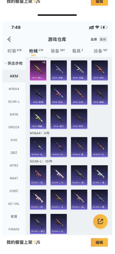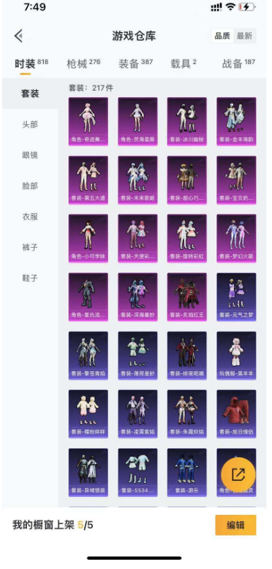 1 粉裝 3 特效槍 2 載具 4 印記 可二次 可修改實名 優質裝備:幽焰風馳摩托車,特斯拉 Model 3 (珍珠白),M416 五爪金龍,七級 M416 - 五爪金龍,GROZA - 鏡光銀凌,Kar98K - 巳巳如意 時裝數:307 槍械數:98 戰備數:2 熱門裝扮:浪漫波比 五級特效槍:五級 GROZA - 鏡光銀凌,五級 Kar98K - 巳巳如意 紫色裝扮:SS22 特訓,SS23 特訓,SS21 特訓,SS31 特訓套裝,SS5 特訓,凜冬戰士,剛毅裁決者,北國孤狼,SS30 特訓套裝,SS33 特訓套裝,SS20 特訓,SS13 特訓,詭謀托雷基亞,治癒之星,科技之星,SS14 特訓,瑞龍福將,團圓交子,SS17 特訓,長空猛禽,雪山征服者,雪山精英,霓虹街區,迎春賜吉,繽紛果語,耀眼新星,藍色守護者,虎虎生威吉莉,躍動心情,龍騰端午,騎行愛好者,鶴鳴,格鬥先鋒,濱海假日,聖誕大吉,幻世戰舞者,怒火燎原,戰地督導,湖藍色名流,濱海廚神,瘋狂小兔子,破蛋小黃雞,甜蜜告白,福星高照,競技勇士朋克,灰色格鬥者,熔岩使者,牛氣滿滿,猛禽,青團波波,糖葫蘆,競技名士,街頭風暴,精神漫遊,熾焰拳師,格鬥專家,SS6 特訓,賽博空間,核芯基因,SS7 特訓,搖滾狂鯊,拳皇 97 草薙京,玲瓏飛花,SS8 特訓,原初聖火,逆風勇士,SS12 特訓,眾神之王,智慧之神,SS9 特訓,SS10 特訓,SS11 特訓,耀粉歌者,SS32 特訓服 (SS32 特訓套裝), 萌黃之夏,新風雅蘭,戀語絨絨,叢林獵人,傳奇偵探,海上生明月,爆竹金鼠 優質戰備:幽焰列車飛行器,幽焰騎士降落傘,臨安公主降落傘,桃粉嫣然降落傘,炫紫旋律降落傘,飛行器 - 神秘黑貓,四聖煥新降落傘,暗夜玫瑰降落傘,風花雪月降落傘