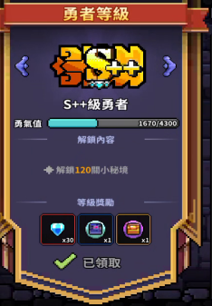 勇者等级s++ 小秘境100层 大秘境30层 開拓之路全過