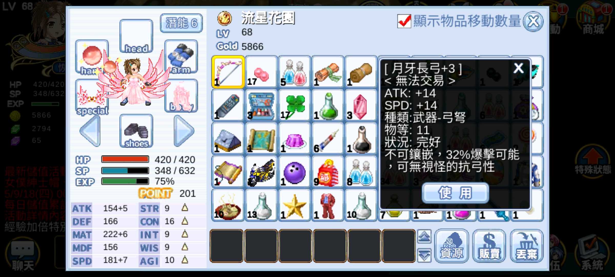 【初始號】新服星河蒼穹/潛能10女闇戰(海派甜心)/紫藤長弓+飛馬+敏捷馬鞍/超便宜