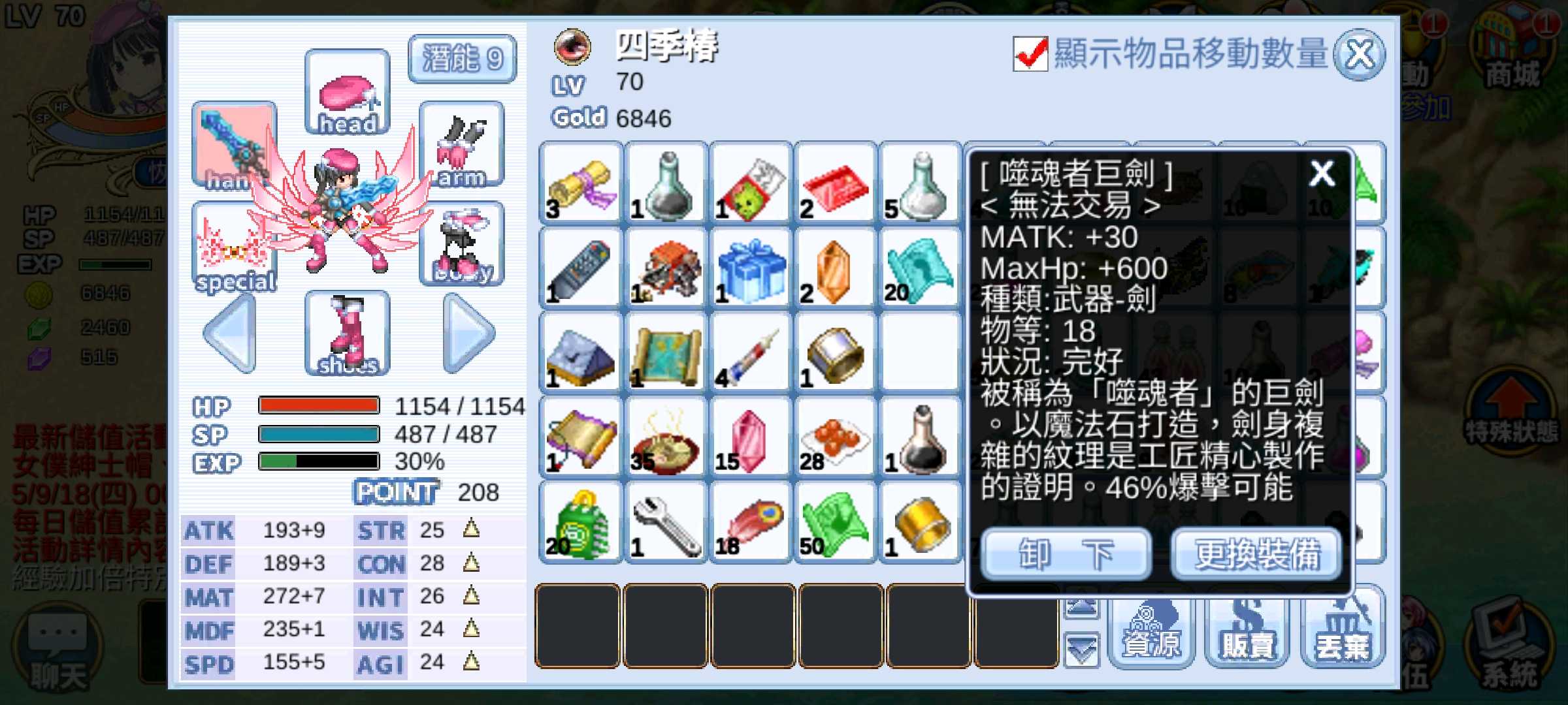 【初始號】星河蒼穹/女闇屬(潛10)(月神)/尼德霍格+轉生丹+巨劍