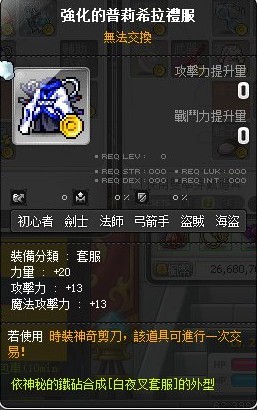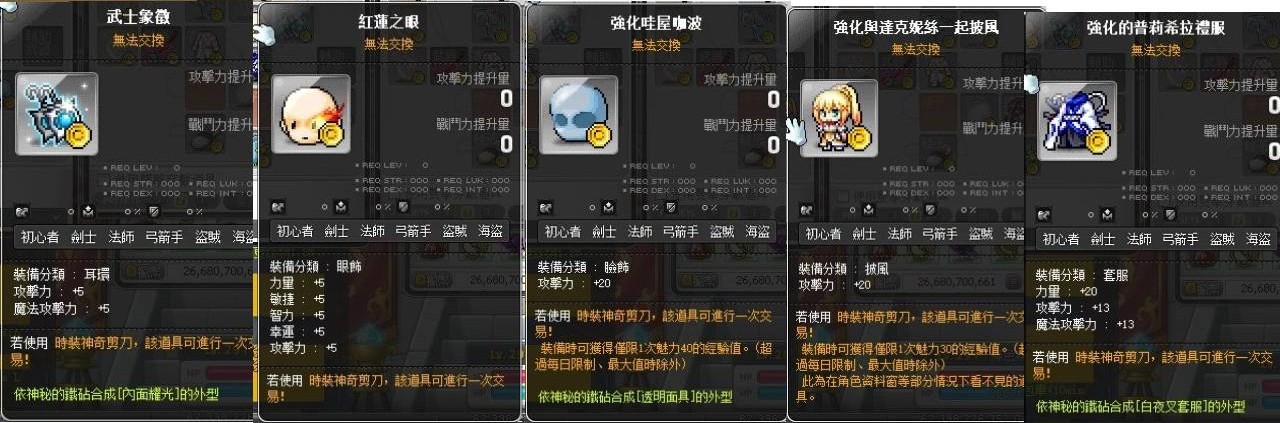 道具 【強化的普莉希拉禮服】 鐵白夜叉套服 武士象徵 紅蓮之眼 強化與達克妮絲一起披風 生命的鞋子+攻點裝
