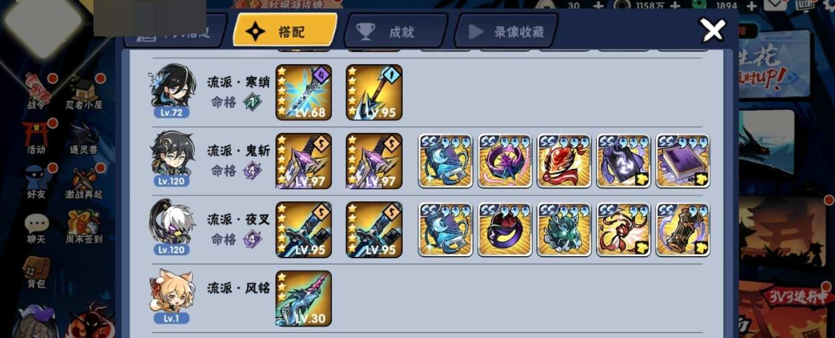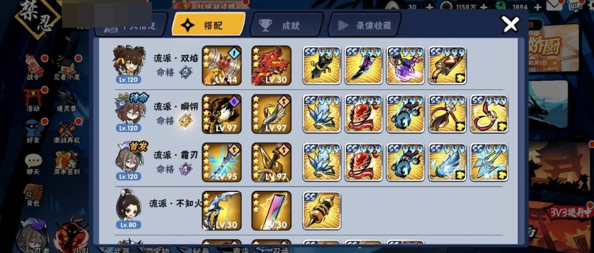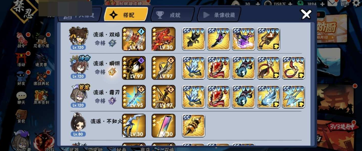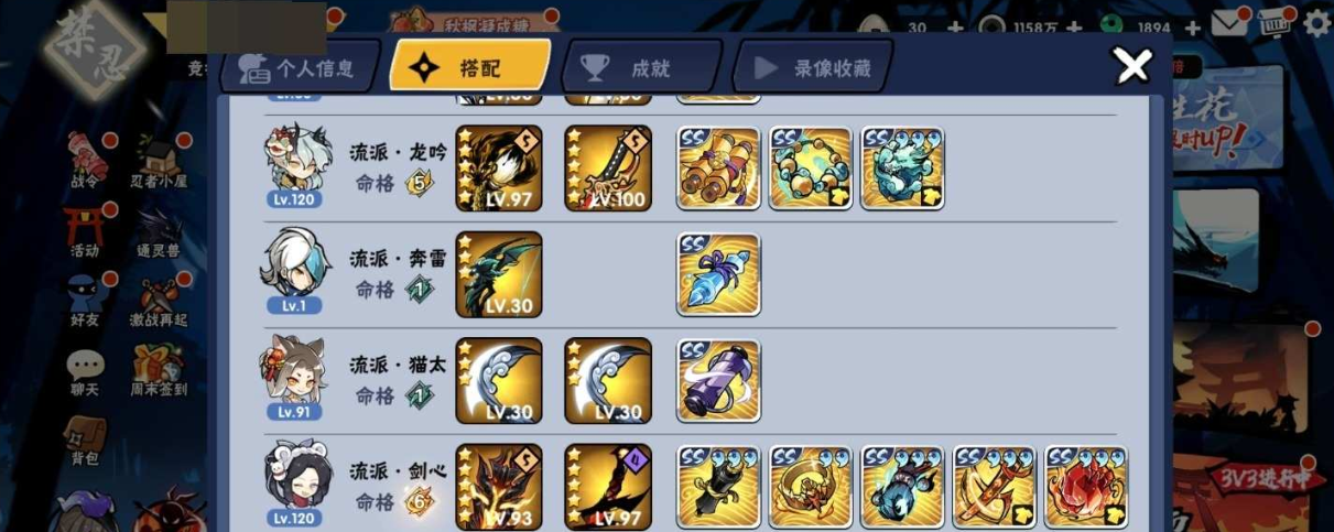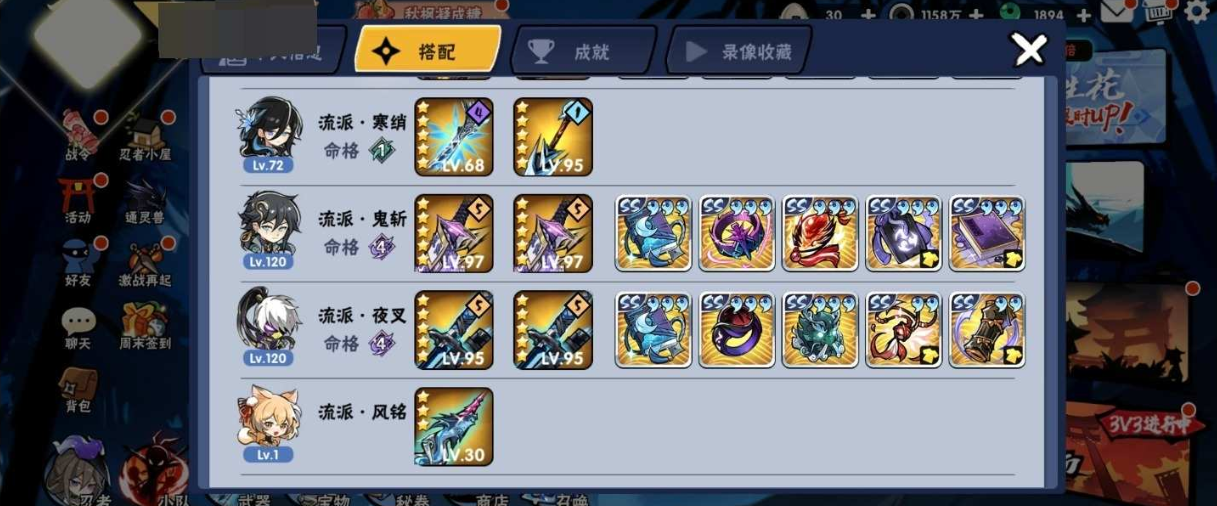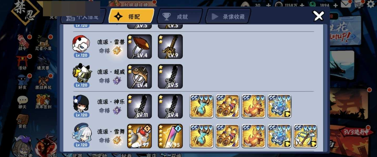 【RIFF5818】影忍,3 命夜叉,號主備註【有風系連協忍者,3 命隼白全皮,三服小頂號,來個板子收】詳情看圖【安卓】【官服】【自己截圖】