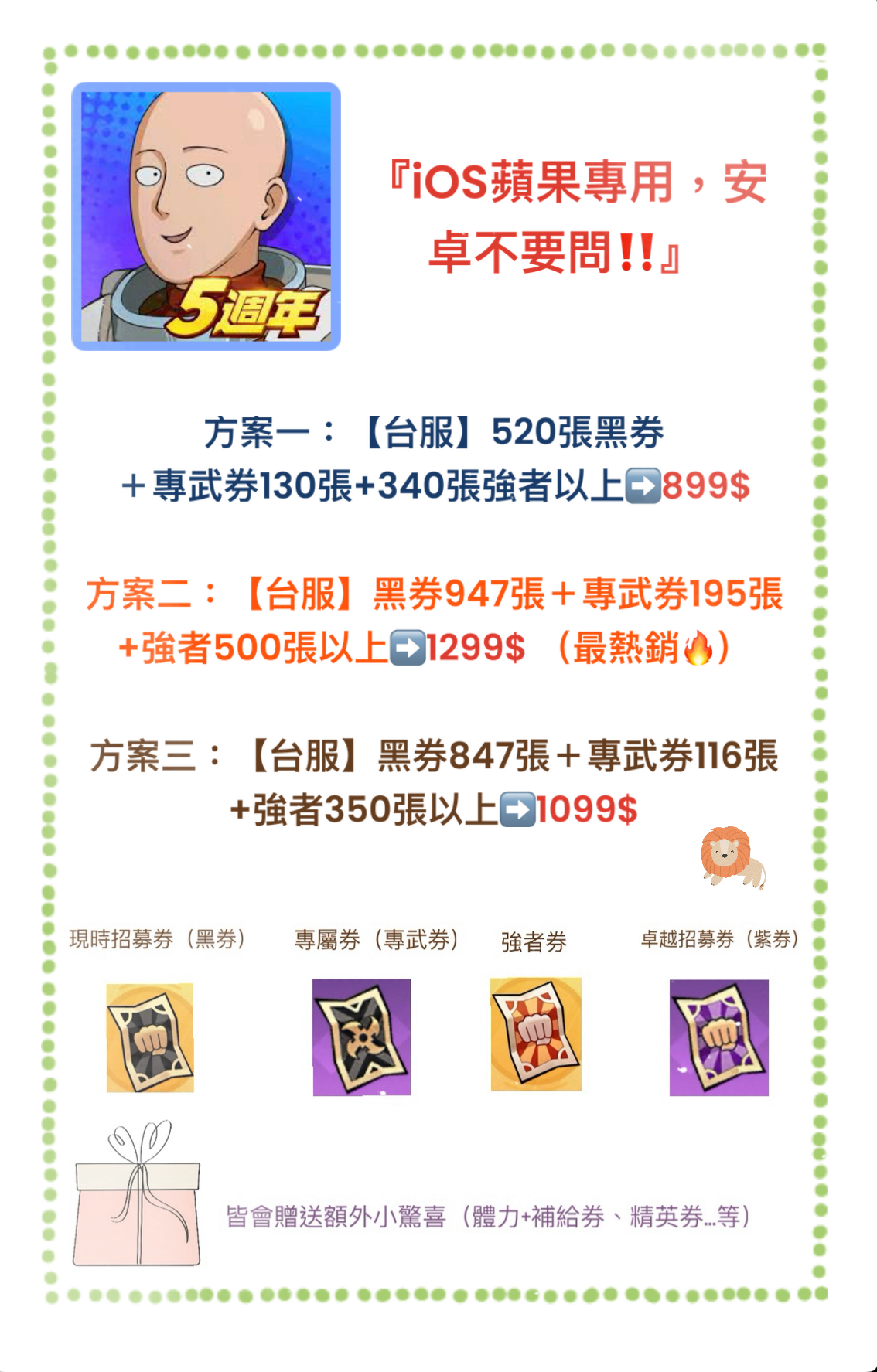 iOS蘋果專用,安卓的沒有賣 勿問。