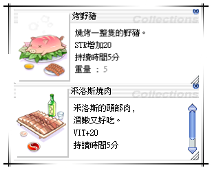 道具 捕蟲草藥草煎畢帝特龍尾麵 小雪獸冰茶狼血雞尾酒烤野豬米洛斯燒肉