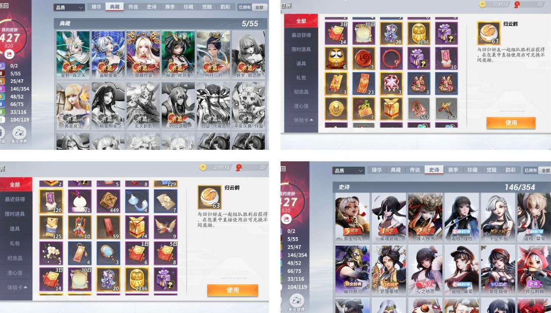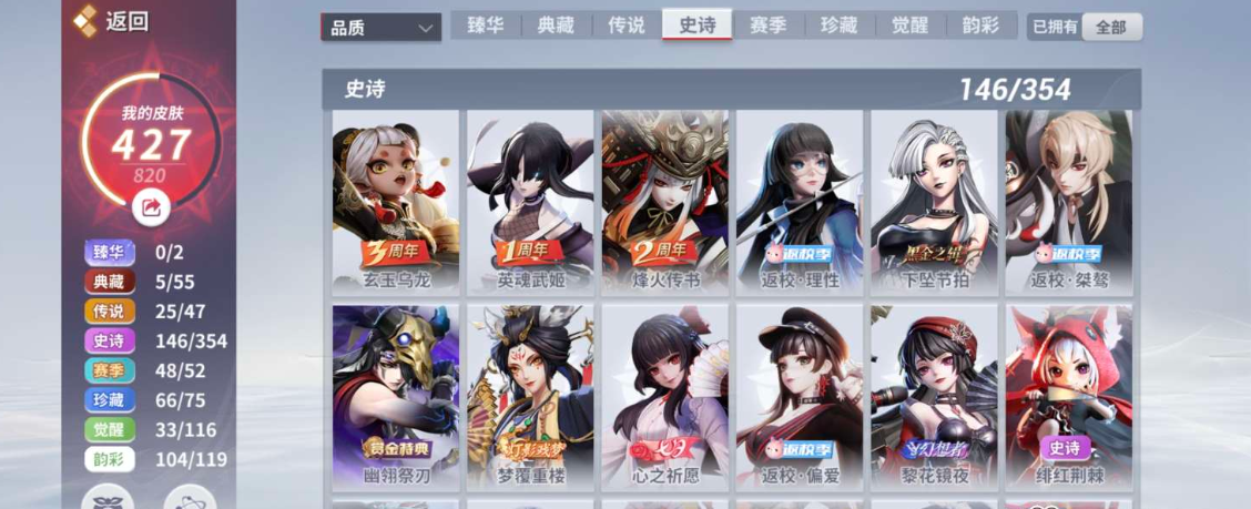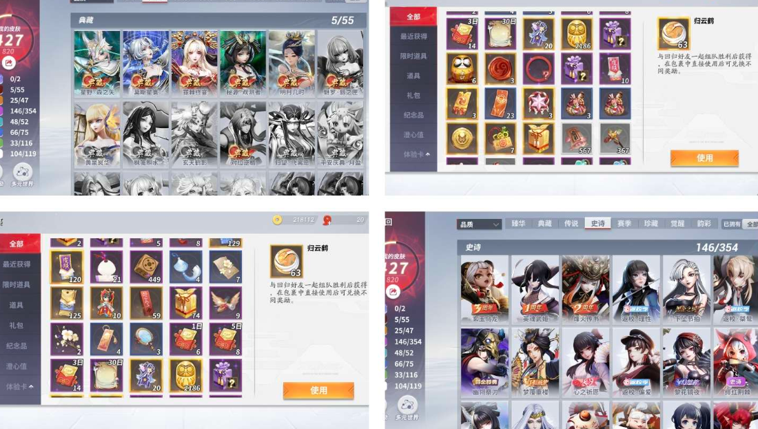 【JHRWG7702】按熱門皮膚:露玉琳琅,日和坊三麗鷗,聆夢三千|按操作系統:安卓|按區服:網易|女射輔號氪條 9000 雜七雜八時尚小垃圾很多 詳情看圖【自主截圖】
