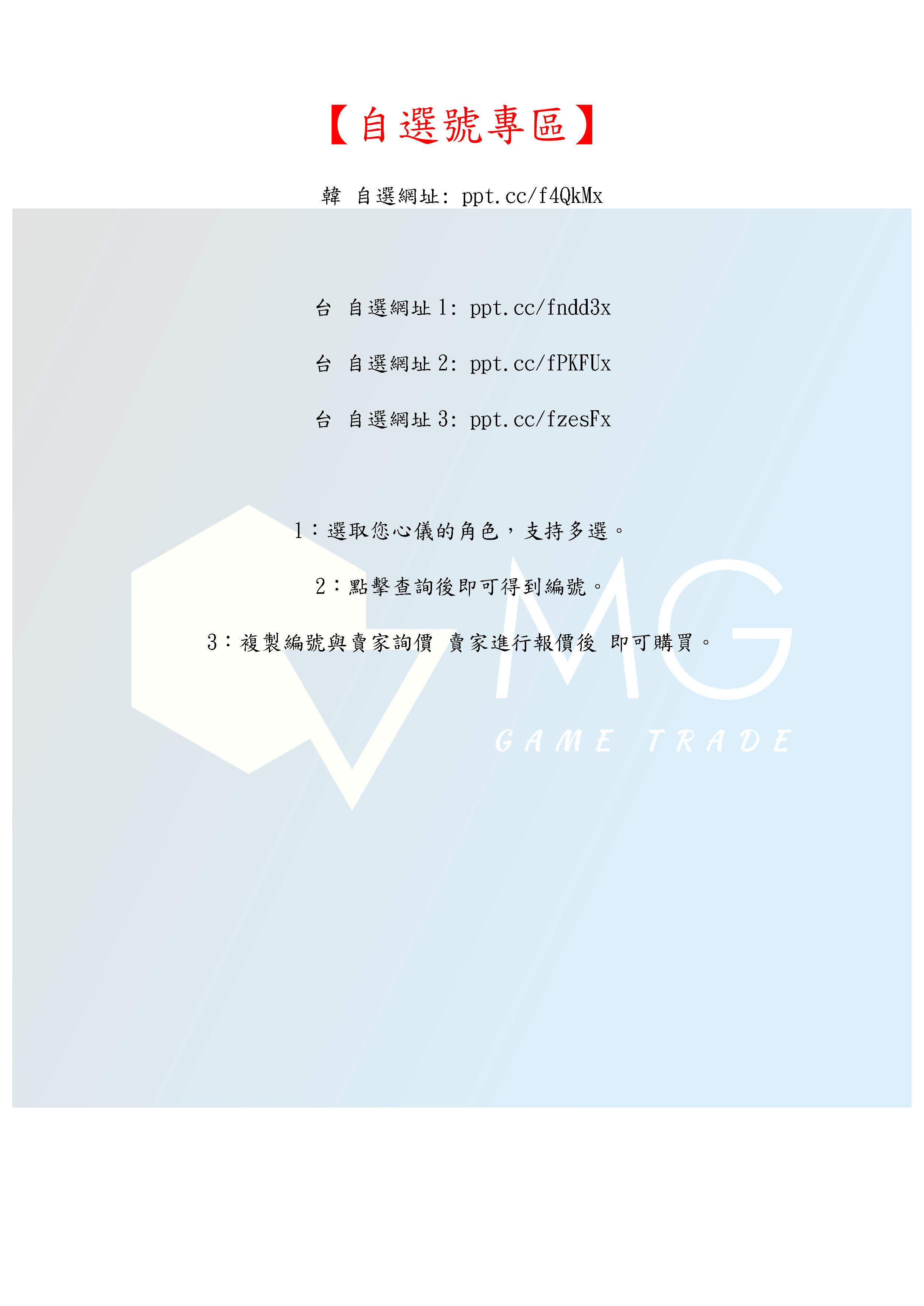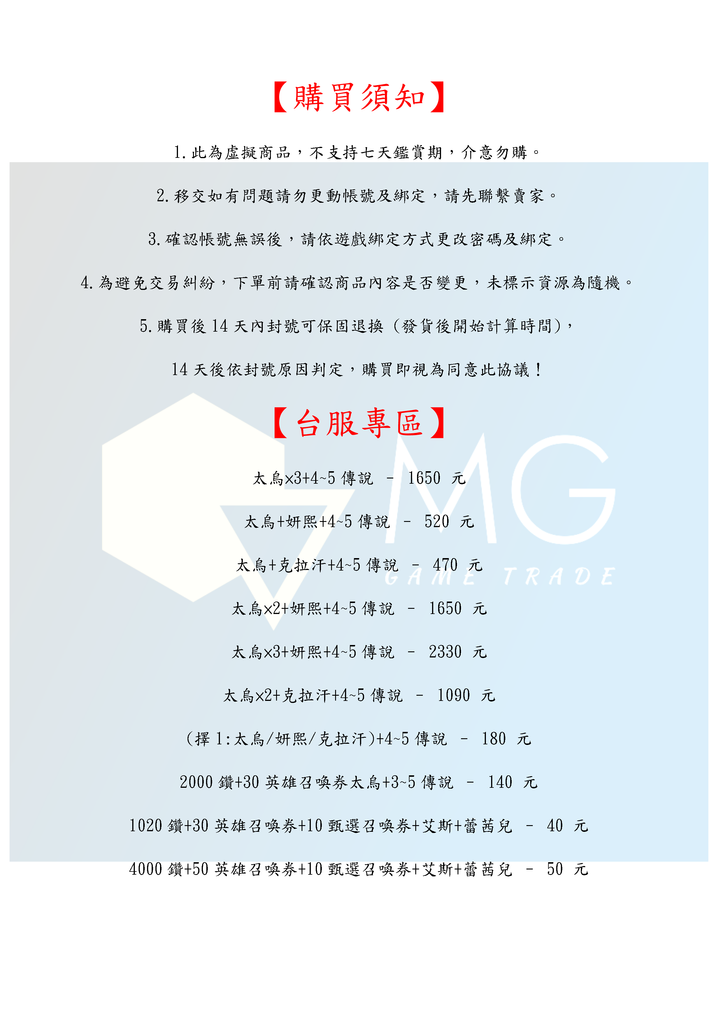 帳號 【初始號】 【MG數碼】台服 韓服 多石號 多鑽石號 初始號 自抽號 自選號 自選組合