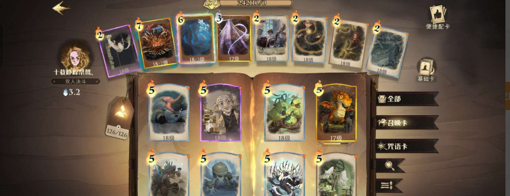 【HLCSK9261】按熱門魔杖:粉紅雨傘|按學院:史萊特林|《哈利波特》124 書男號(可小刀),帳號最高可升 130 級。全卡牌收集,含 2 張閃卡、10 多張滿級卡;回响配置:18+3 閃電的妙麗回响(貓雷套牌已接近畢業)、18+3 雪球的哈利回响(差少量資源畢業)、18+2 甜點 / 15+2 龍蛋 / 18+2 盾的奈威回响;角色自定義:瞳色、眼鏡款式選擇豐富,衣櫃規模中等,收藏等級 8 級。詳情看圖【冥想盆】【自主截圖】