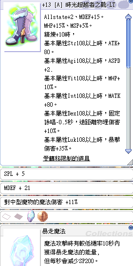 道具 +13A 時光超越者之靴LT (速4.魔爆)(SPL5.中型11%)